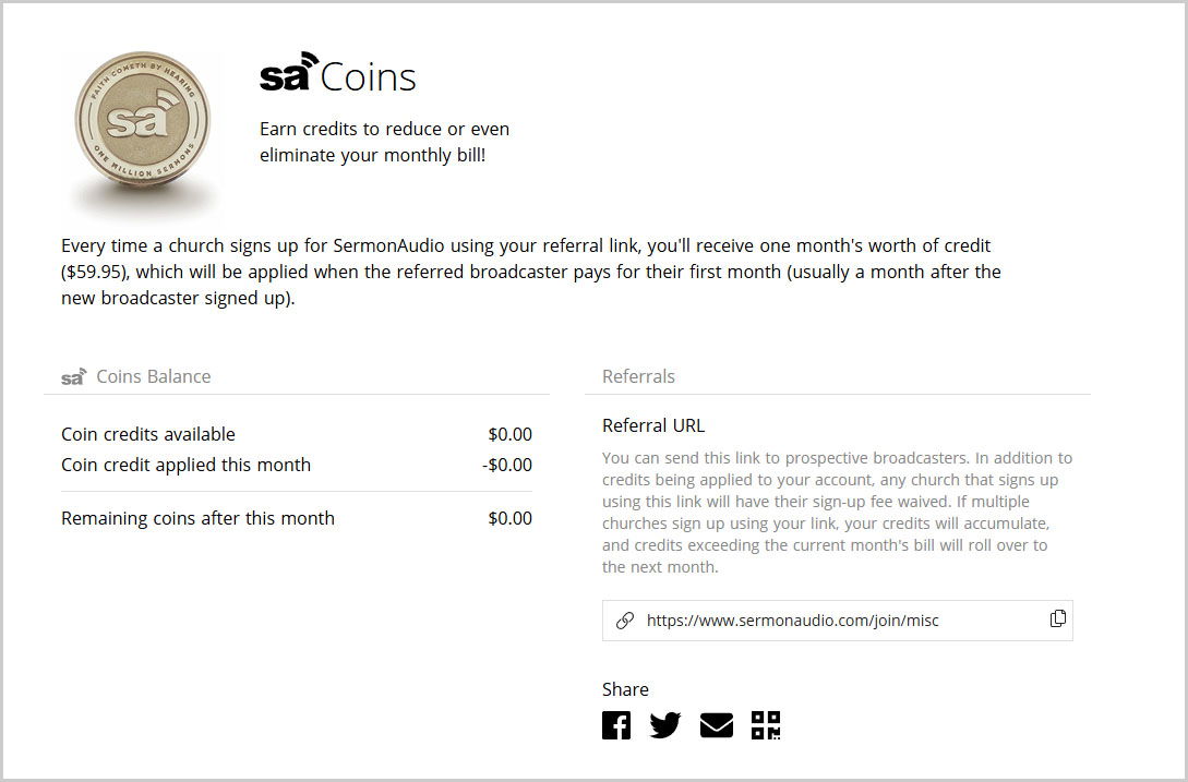It's an easy way to earn credits to reduce or even eliminate your monthly bill by simply referring SermonAudio to other like-minded churches.